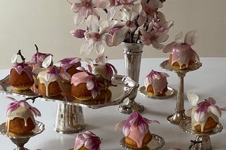 Magnolia blossom poundcake with white chocolate ganache