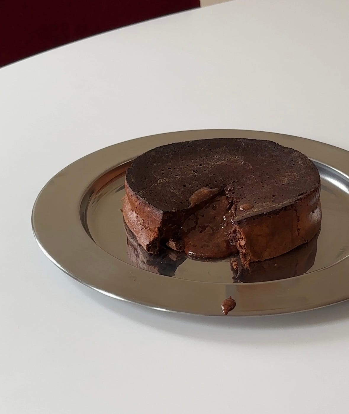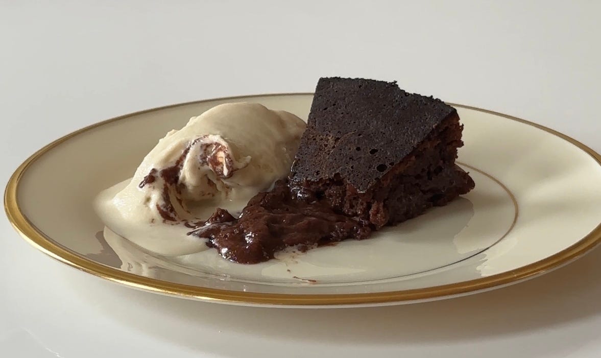 somewhere between a chocolate lava cake and a soufflé, sized to share