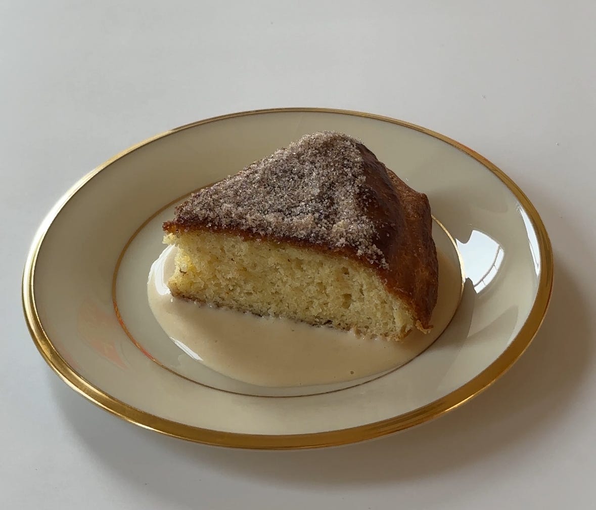 imagine: the big leavened pan-pancake gets topped with spiced sugar and then placed in a pool of vanilla anglaise. it reminds me so much of an excellent warm cinnamon sugar donut – and i love it. i am already planning to make it again tomorrow for brunch. and then after that i am dreaming up a breakfast for dinner-party and thinking of serving it for dessert with a scoop of ice cream on top. the idea of the hot tender pancake, with the spicy crunchy sugar, and the cold creamy ice cream is sending shivers down my spine!
