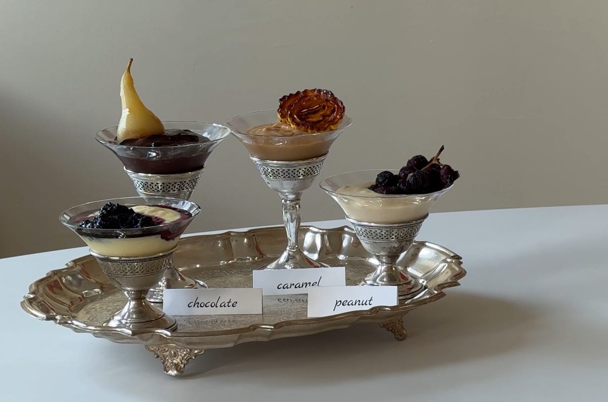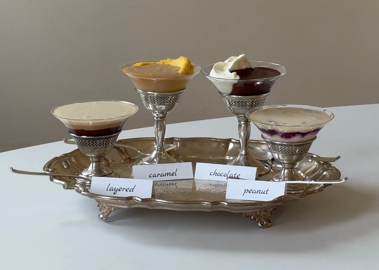 I loved adding smoked black tea to the chocolate pudding and finishing the caramel pudding with brown butter. I also feel like raw sugar in the peanut butter pudding would’ve been great, but I didn’t think of it in time.