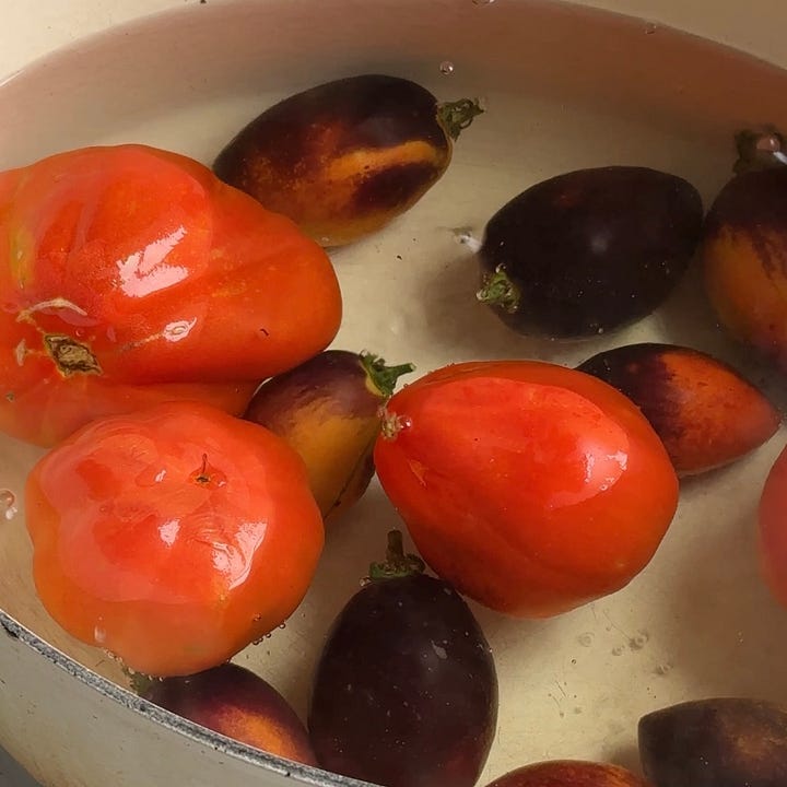 Luckily, there is still time for me to preserve a few more of summer’s fruits: plums (which I got to over the weekend), tomatoes, peppers, and eggplants.