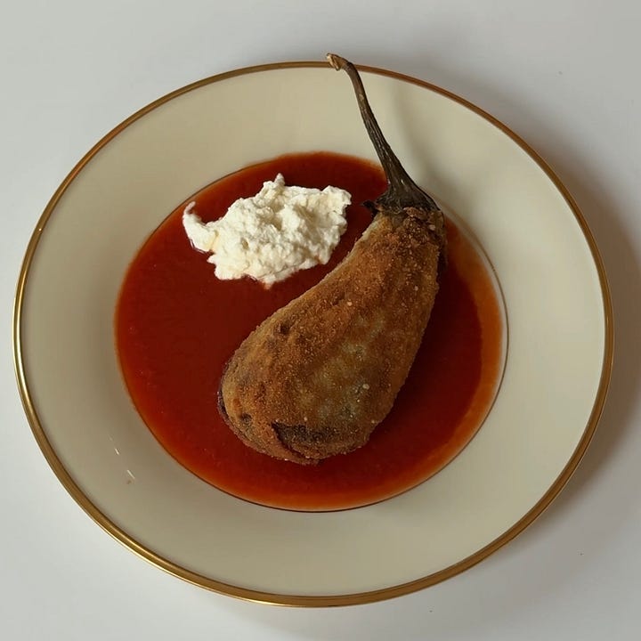 The second recipe i ever posted on here was for eggplant parm-ish, and every year i’m thrilled at how well it comes out. This year, it was the first thing i made with that tomato sauce i had just prepared. It’s a perfect dish for this time of year, i can still find eggplants at the greenmarket, but it’s cool enough to crave something a little saucier, richer, and fried.