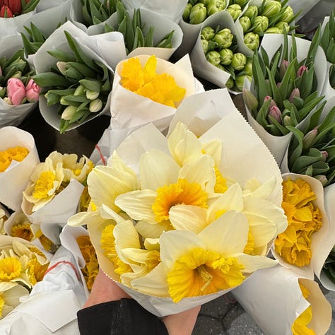 Then there was the time I saw one of my favorite flowers, daffodils, at the farmers market, and brought a bunch home with me. I knew they would cheer me up every morning while having my coffee and checking emails, but they also inspired me to get creative in the kitchen for absolutely no reason at all, my personal form of self-care.