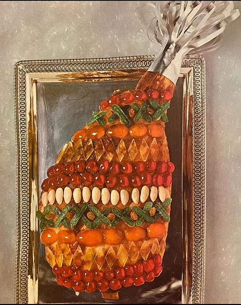 i was trying to think of a theme for my holiday party this year and, as always, i went to pinterest to get inspiration from vintage holiday spreads. one thing stood out in my saved photos: sweets on everything. there were hams covered in a myriad of candies, puddings of all shapes decorated in jewel-toned sugared fruits, and ads for corn syrup featuring unidentifiable towers of sticky sweet things in perfectly bright hues. and while all of these sweet-coated dishes would have been oh-so-fun to play around with, i couldn’t quite swallow the idea of serving a ham covered in candy to my guests (and i’m not sure their stomachs could handle it either).