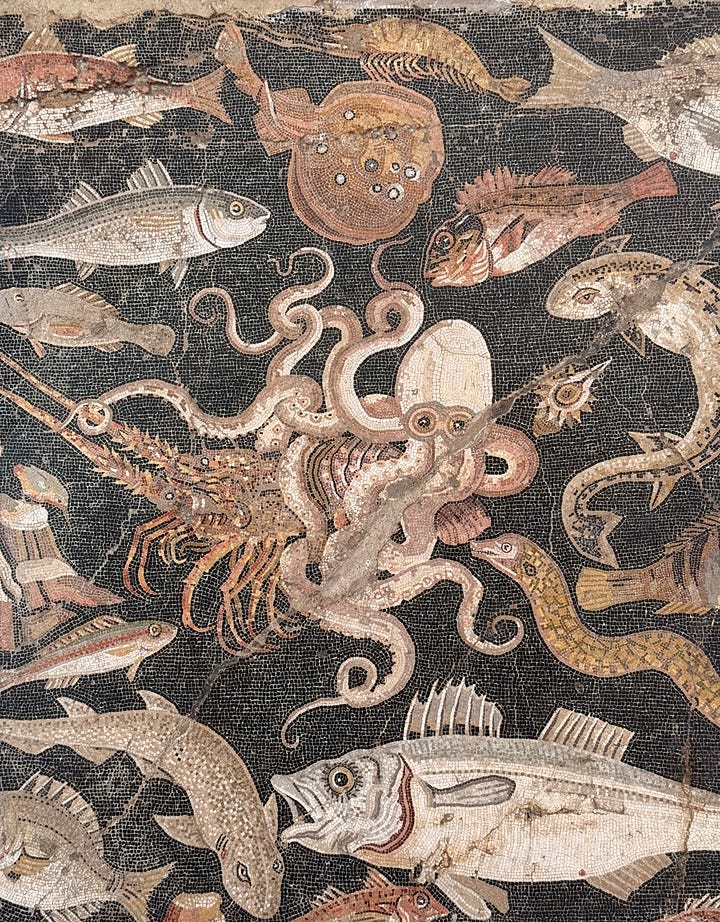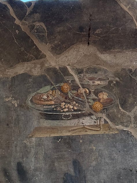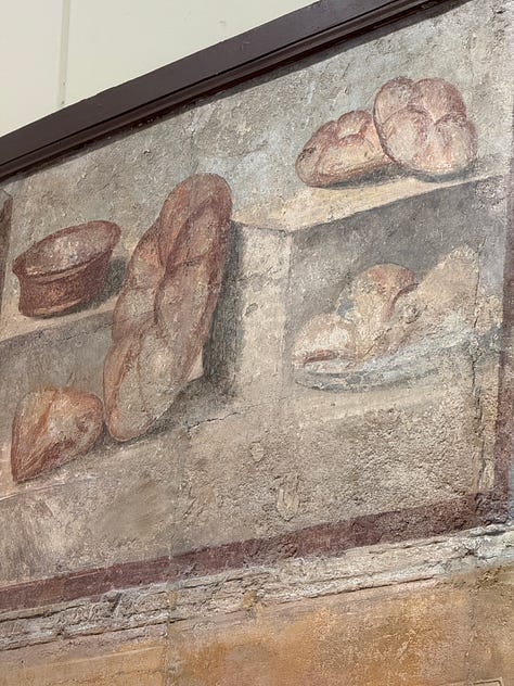 Frescoes of bread at the archeology museum and in Pompeii (and eating focaccia barese in Pompeii as a midday snack).
