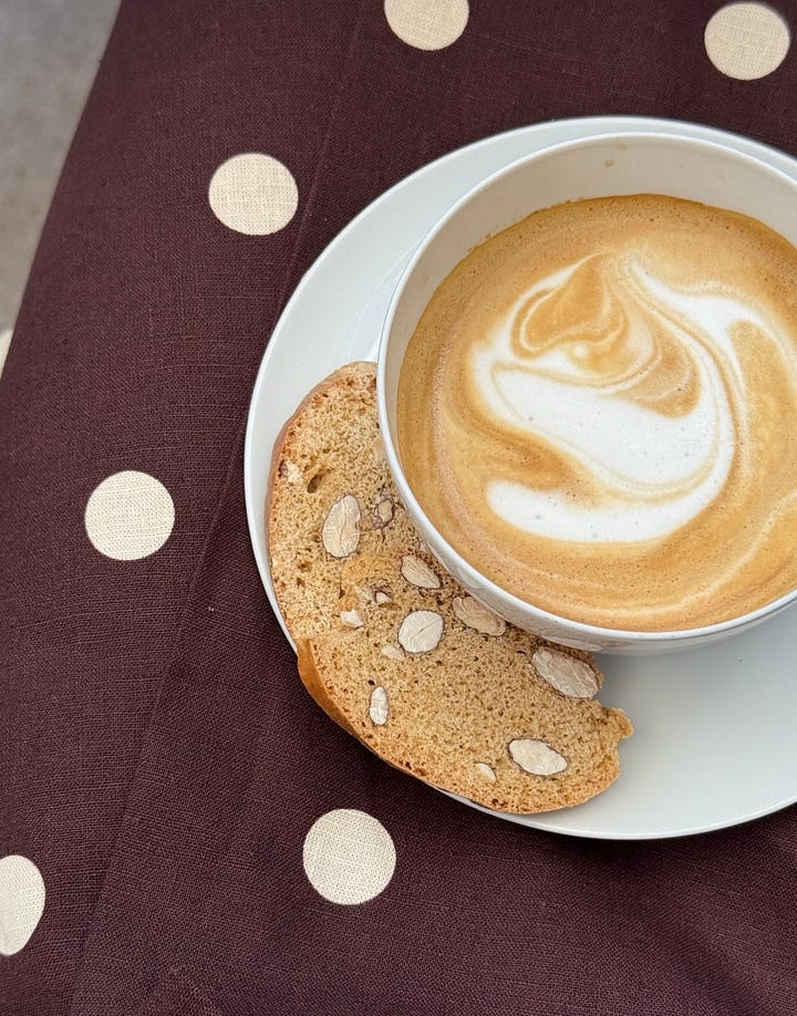 Callisons and cobblestones + almond croquants, coffee, and a polka-dot skirt.