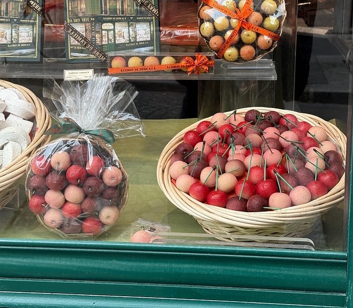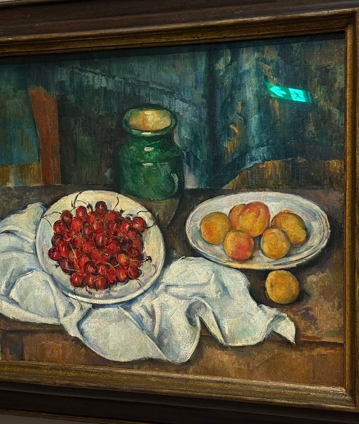 I saw this bowl of cherries at the Cezanne show in Provence, and then stopped in my tracks on a run upon seeing this bowl of cherry candies. Art and life imitate each other.