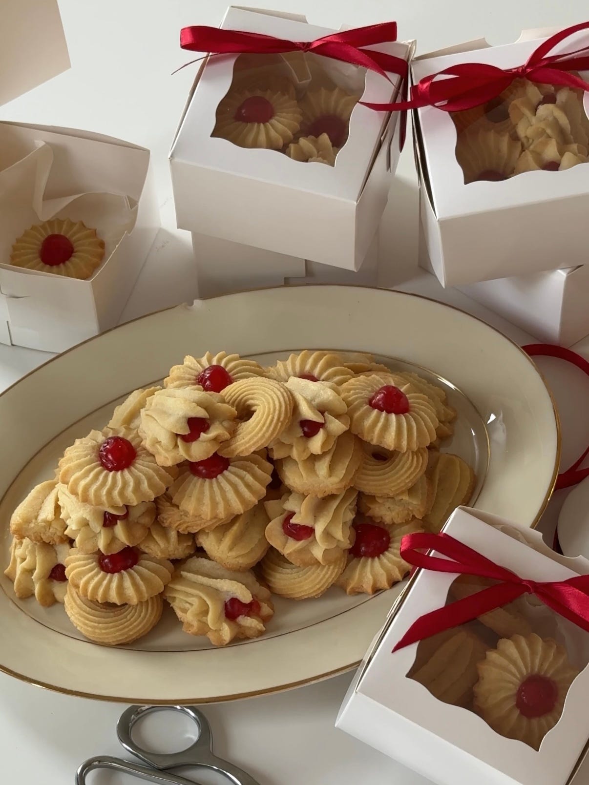 I always noticed that my grandfather’s spritz cookies would take on the scent of other cookies they were stored with because of the copious amounts of butter. Then, on a holiday hotline Substack Live with Liz Prueitt last year, I learned about her riff on an old tradition of using whole spices for scent by tucking them into a box of cookies to perfume them. I tried it out this year, and while it takes a few days to perfume, it adds a lovely touch; it’s imperceptible on the nose, but as soon as you take a bite, the flavor releases.