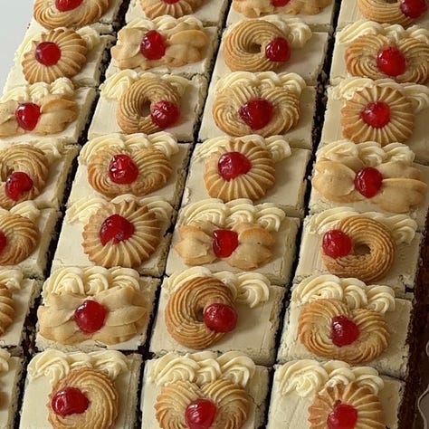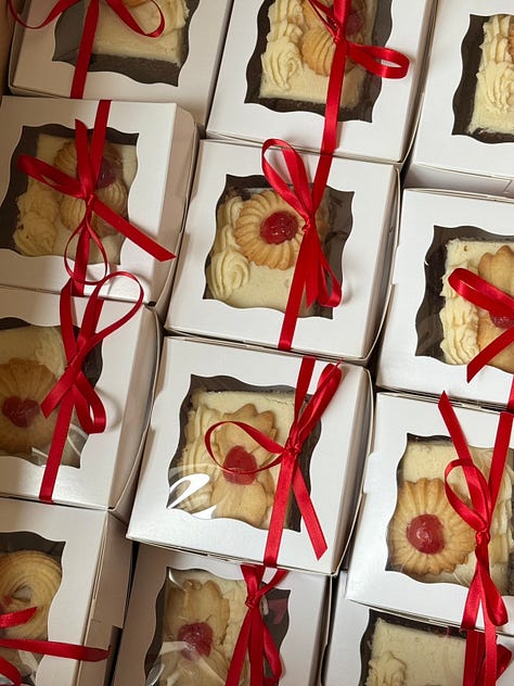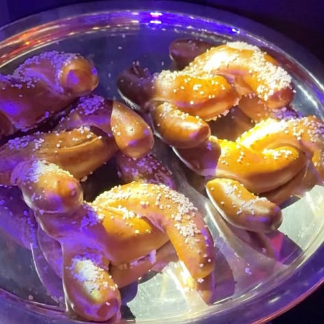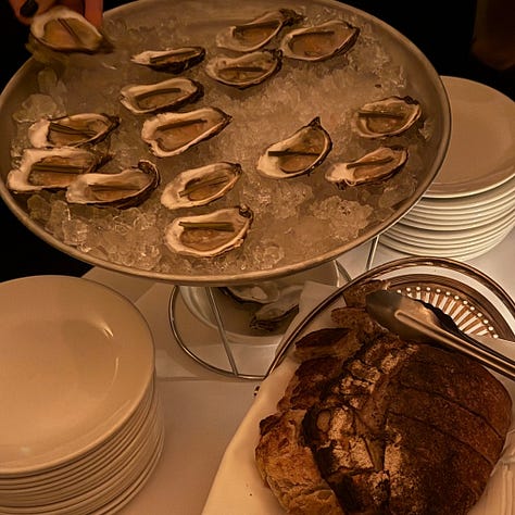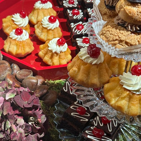 Some more delectable, memorable, holiday bites: Chanel had little interlocking C pretzels at their Métiers d’art afterparty – fun. Thistles & Highsnobiety hosted a party at Bridges, and the little bites were delicious, especially the cured tuna over dates. Feed Me, my favorite media newsletter, turned three (happy birthday) and held their holiday at the Waverly INN with a beautiful cake by Lauren Schofield. Lauren has been making so many gorgeous desserts this holiday season, and she made a gorgeous display with Romilly Newman at the new Baccarat flagship in the Meatpacking District. Cherry Bombe magazine (which has just joined Substack), threw a party for the launch of their cake issue. Claire Saffitz hosted a cookie exchange at Salt & Straw, I was so in love with her chewy molasses cookie ice cream flavor (somehow the cookie is still soft and chewy when frozen) I didn’t even try any of the other cookies. Loewe Perfumes has a pop-up at Rockefeller Center, and the new Iris Root is an instant favorite. I was lucky enough to get sent home with a bottle and have been wearing it as a daytime scent. The pop-up also has hot chocolates inspired by the new scents at the Glace truck outside. We went to Cafe Zaffri afterwards, and their fries were excellent.