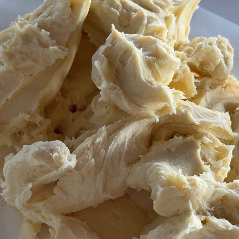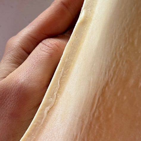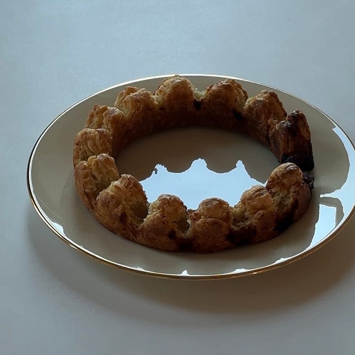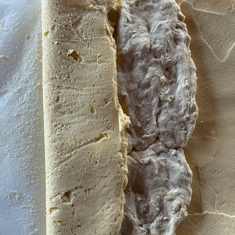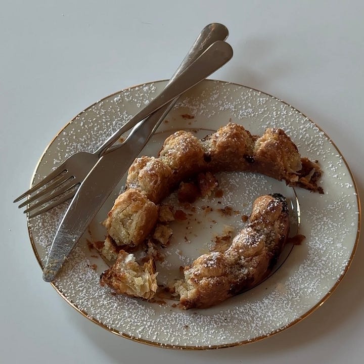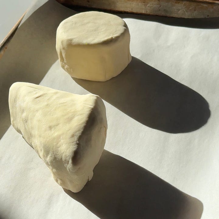 If you are interested in making your own puff pastry, it is quite the task, but for me the reward is worth the effort (1. IMHO it does taste better than its store-bought counterpart, and 2. the store-bought stuff is quite expensive). If you are in need of a recipe, Nicola Lamb did a deep dive on her Substack, and it looks like a great recipe. My only suggestion is to double it so you have enough for multiple baked goodies. Puff pastry holds very well in the freezer, as long as it’s wrapped tightly in cling film (and maybe a sealable bag).