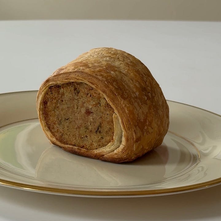 Sausage rolls are an all-time favorite food of mine. I grew up eating a lot of pigs in a blanket, and they are still my preferred finger food in adulthood. Recently, I was introduced to the British version, the sausage roll, typically larger than pigs in a blanket and made with seasoned sausage meat rather than a link in casing. The filling often includes herbs and spices, and sometimes other mix-ins depending on the style. I fell in love at first bite (P.S. Hani’s makes a delicious one for those in NYC).