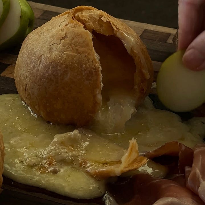 In high school, on one Christmas Eve, I was introduced to brie baked in puff pastry, and it changed my life. While I had never been much of a cheese fan prior, the gooey, warm cheese in the soft, airy puff pastry made my heart melt. From there, I began eating more cheese and learned that I just liked it funkier and gooier than I had previously tried. Since then, I have not had the pleasure of eating cheese baked in puff pastry, and this month, it felt like the time was ripe to rectify that.