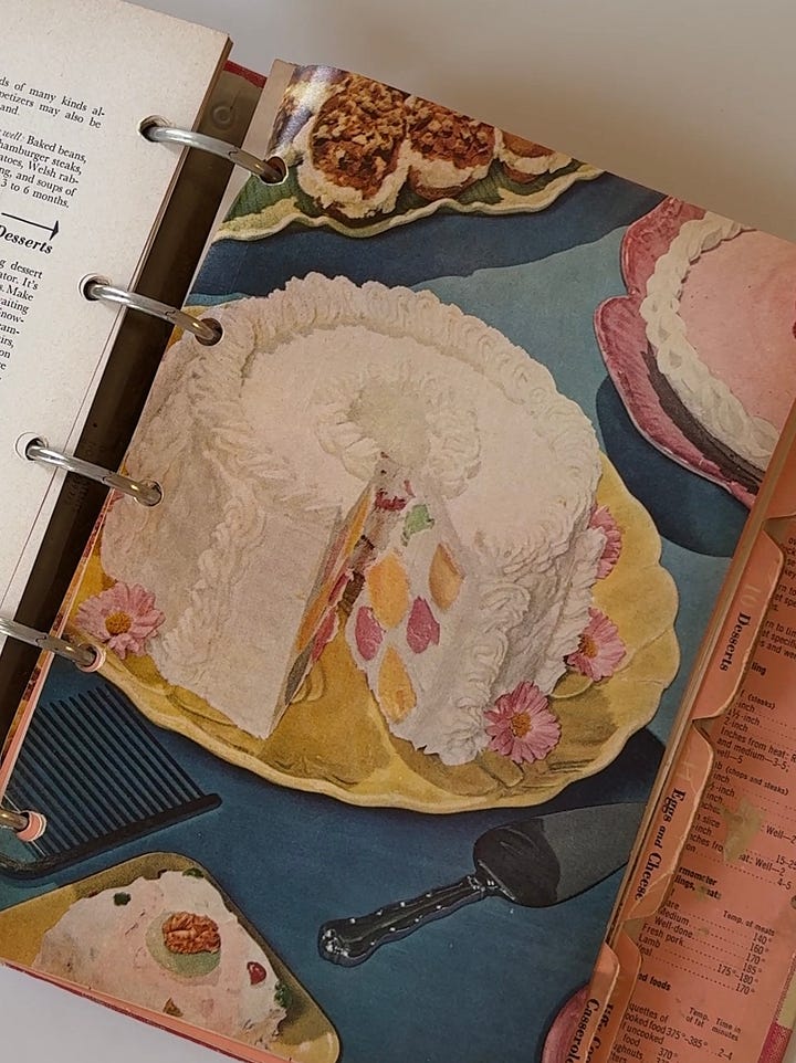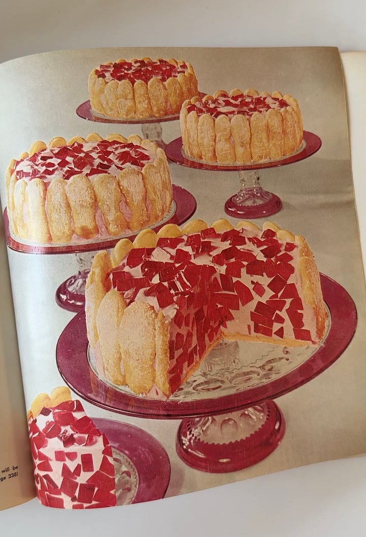 Last year, I made a riff on a classic icebox cake with whipped cream and chocolate cookies. That recipe is rich and decadent (and you have to turn on the oven to make the cookies), so I wanted to make a more seasonal and refreshing version this year: one with strawberries, vanilla, and a light sponge. For a while, I was stuck on how I would make it. I turned to my old cookbooks for inspiration and found these beautiful images: