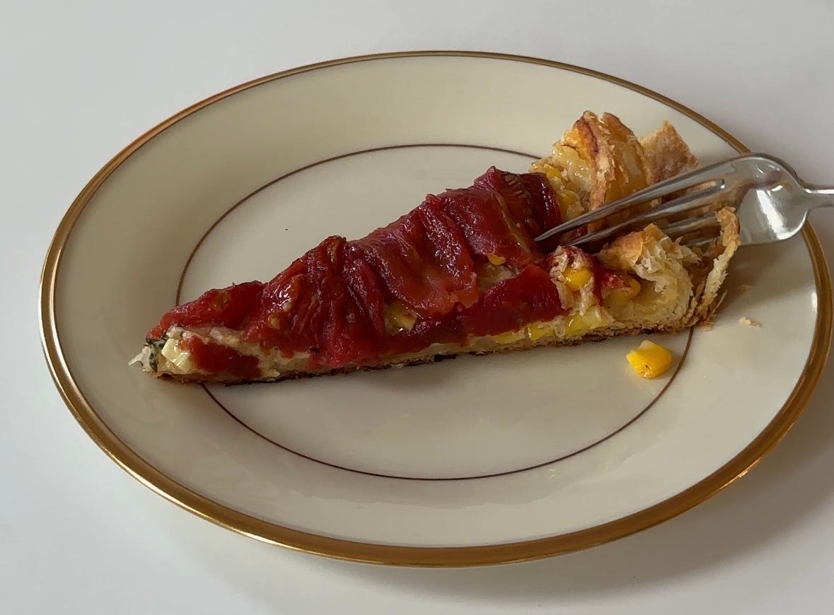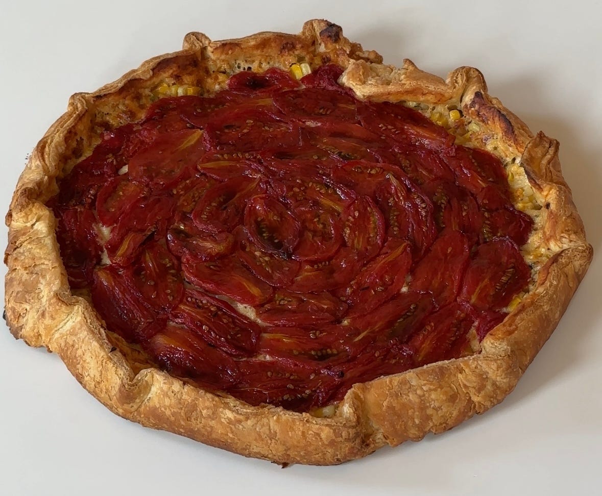 tomato corn cheddar galette